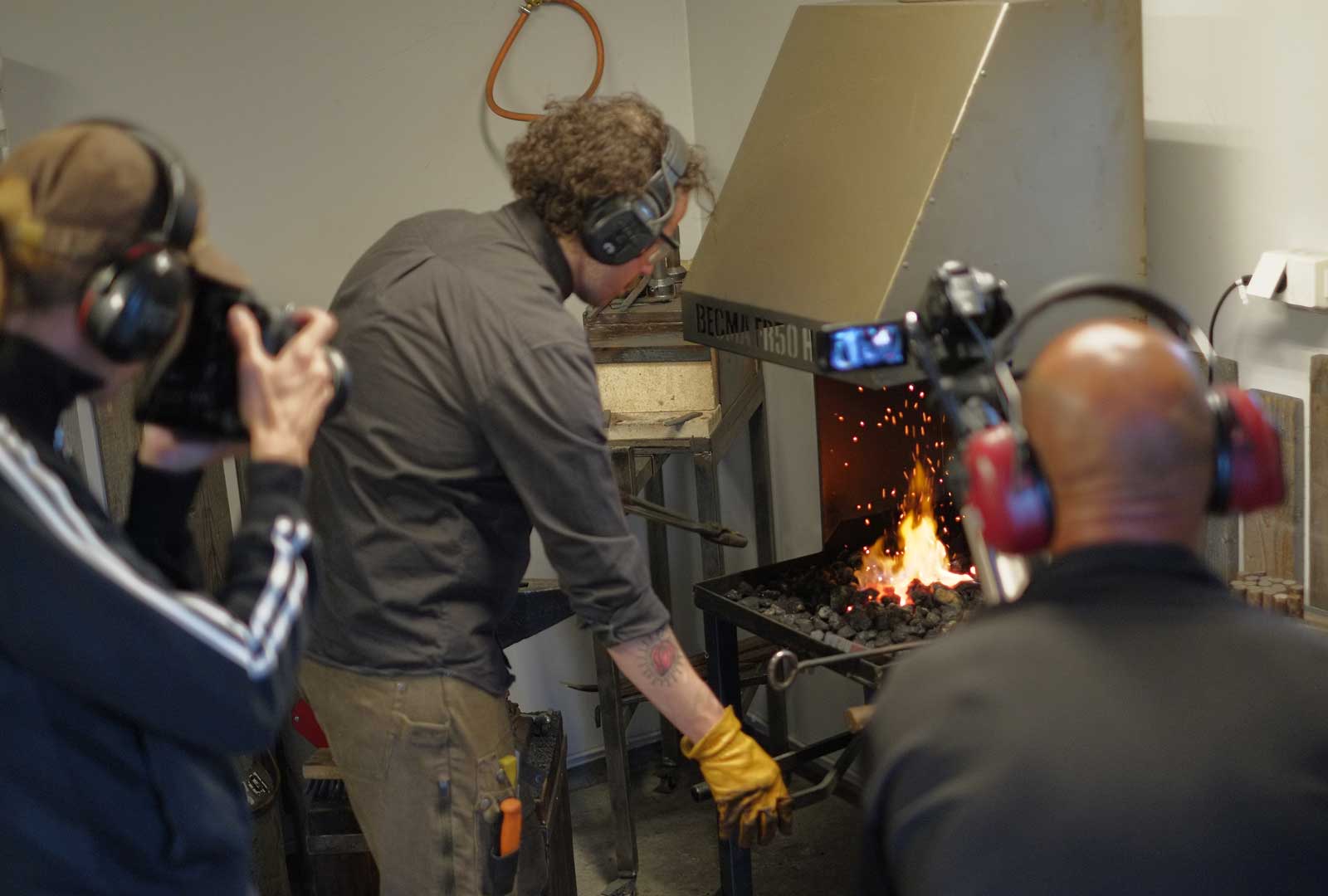 At the Oppistuggu Blacksmith Shop, getting ready to brand the beer crates for the opening ceremony.